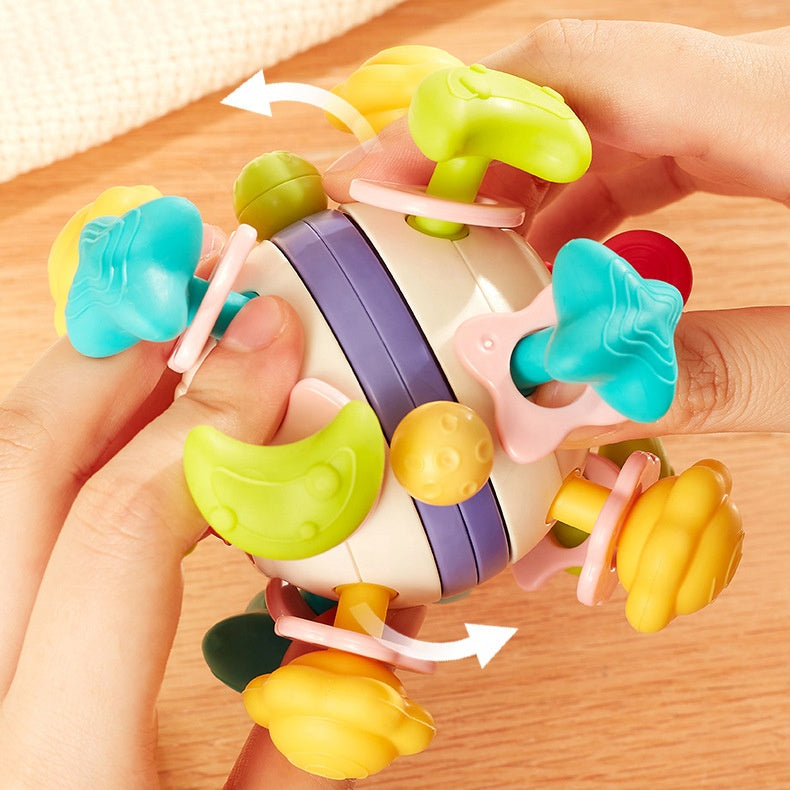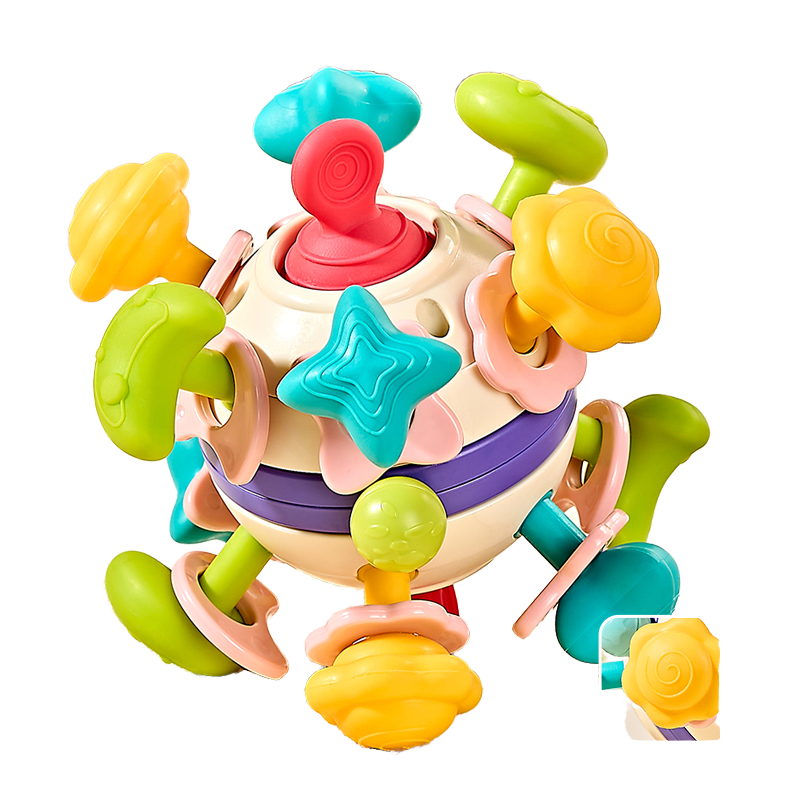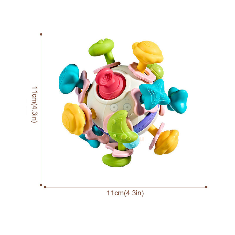 Este increíble juguete sensorial en forma de bola está diseñado para estimular los sentidos, la coordinación y el desarrollo motor de tu bebé de una forma divertida y segura. Cuenta con múltiples piezas giratorias, texturas y botones que el bebé puede girar, presionar, halar y explorar, fomentando el aprendizaje a través del juego.