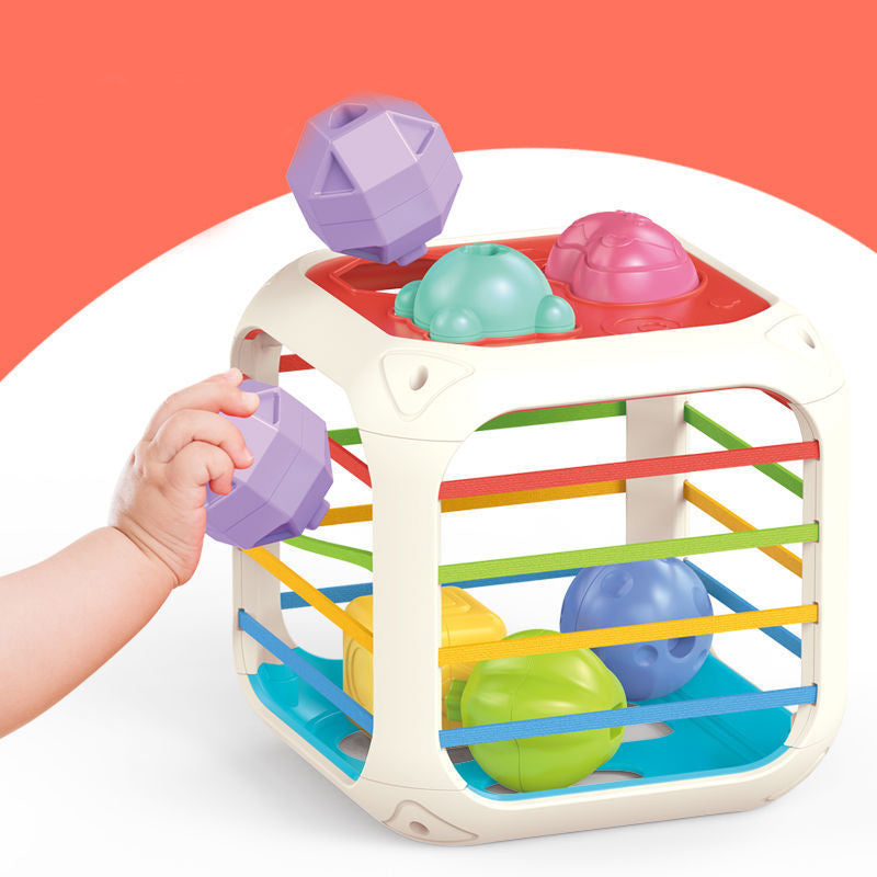 El bebé debe introducir las figuras por la parte superior o sacarlas a través de las bandas elásticas, fortaleciendo la coordinación, la lógica y la paciencia de forma divertida.