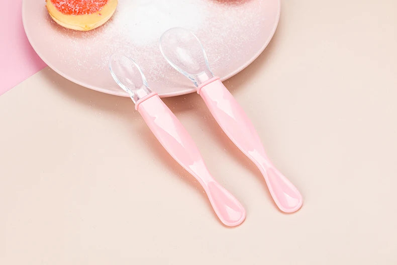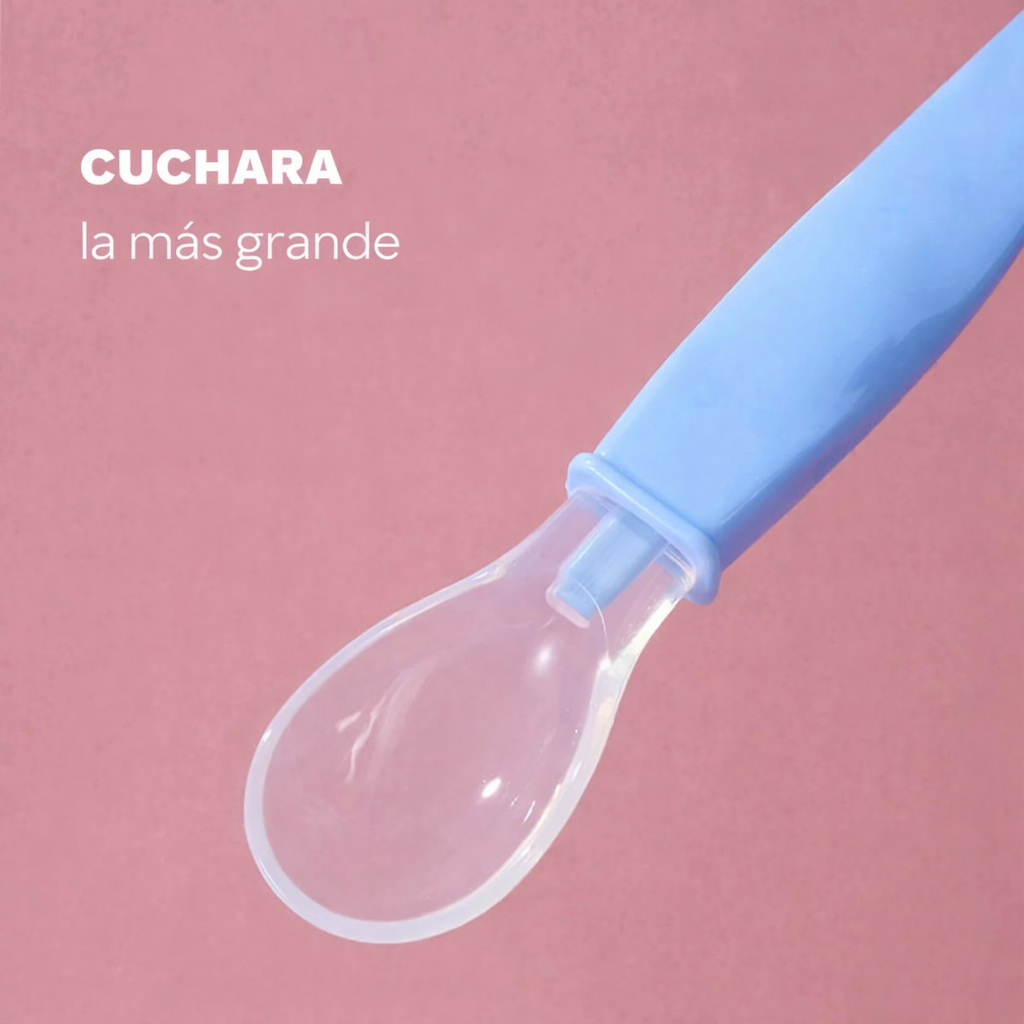 Esta cuchara 2 en 1 está diseñada especialmente para acompañar las primeras papillas y la transición a alimentos más sólidos, cuidando las encías delicadas de tu bebé.