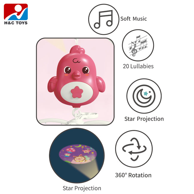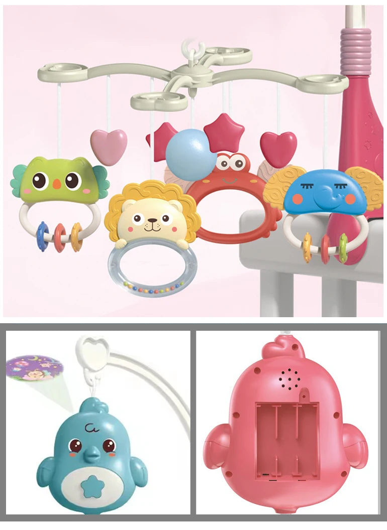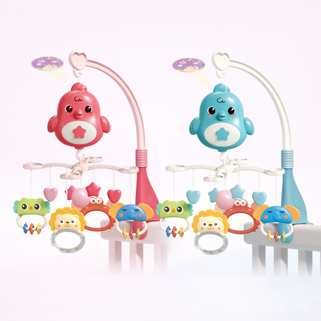 Este móvil musical con proyector combina luces, melodías y adorables personajes colgantes que ayudan a calmar, entretener y estimular los sentidos de tu bebé desde los primeros meses.